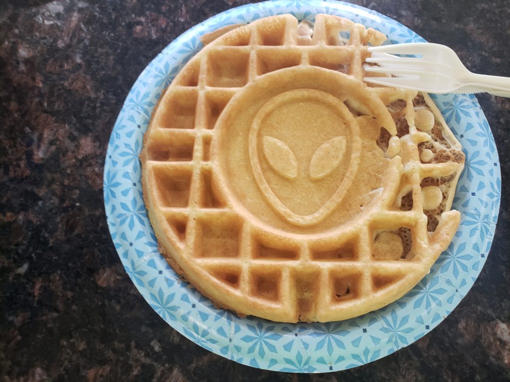We had a rental car so we had leisure to traverse the city end to end and as our hotel was on the north end of town it was necessary to have wheels at our disposal. Darren and I ran the 5k Saturday morning while Andy and Brandon got breakfast at Dennys. The festival portion was one of the best small town festivals I have ever attended. It was well run with lots of events for all ages. They had a reenactment of “the incident” that got booked well in advance but would have been fun to take in. We got tickets for a laser show at the Goddard Planetarium, watched the drone show, went in a few of the main street carnival type (permanent) exhibits, 2 of the conference events, and drove out into the desert to one of the alleged sites. On our last dinner in town we went to Billy Ray’s where we met Shirley, our server and long time Roswell resident. Shirley asked us if we knew about Billy the Kid and Pat Garrett. She was almost annoyed that we came to town for the UFO event and knew nothing about the local history of Roswell. It seemed that in her eyes the local history had little to do with crashed space craft and little green men. I promised to checkout the Garrett monument at the courthouse before we left town. Promise made promise kept.
