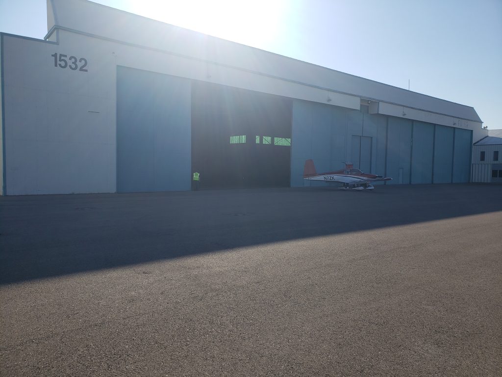Ex bomber hanger that swallowed Skyscraper whole. The hangar had a bump out for the nose to poke into with overhead cranes over the length to work on the wings and a hole in the door (just above Skyscraper’s windscreen) where the tail would poke out.