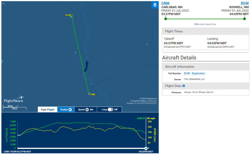 With the 75th Anniversary of the “Incident” at Rowell coming near I decided to plan a trip to see the festival the city put on. Brandon and Darren both volunteered to come along from Orlando and Andy from Dallas. We loaded up and headed for Dallas where the plan was to stay the night at Andy’s house before departing early to beat the often turbulent afternoon weather over New Mexico. After a car tour of Dallas going from the spot where JFK was shot to the Stockade in Ft. Worth we stopped for the evening before getting an early start on the quick hop to Carlsbad.