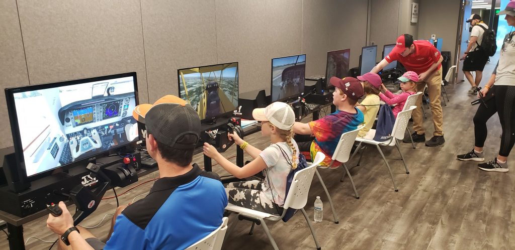 This year we stopped by to see the Aerospace Center for Excellence. This is a facility that provides STEM education and scholarship programs, paid for by Sun N Fun revenue. The building was impressive and I now know where all the money from SnF goes!!! In one room they had a large suspended orb that had projectors on it where they could show various planets or current weather patterns on earth among other things. They had 20 Red Bird trainers there too.